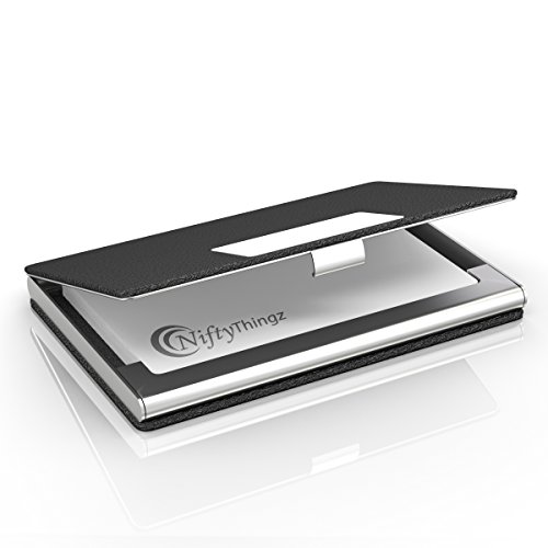 Niftythingz Leather/Stainless Steel Business Card Case, Black