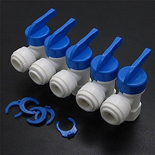 PureSec RO Water Storage Tank Use 90 Degree Elbow Shut Off Ball Valve Plastic Push-fit Quick fittings with Female Thread 1/4 Inch x Tubing OD 3/8 Inch ( 5pcs/Pack)