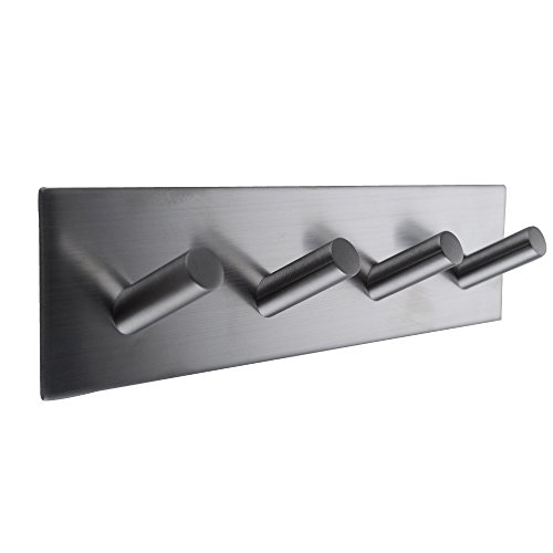 Stainless Steel Clothing Hat Hook Bathroom Kitchen Towel Hanger Wall Mount Contemporary Style Strong Stick Hook … (4 Hook)