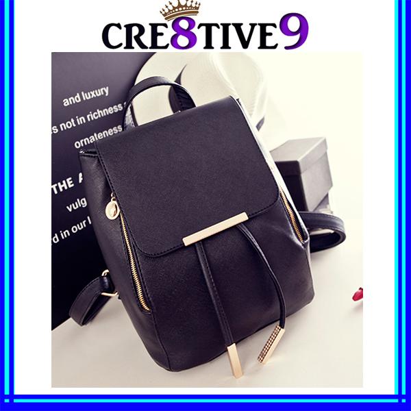 PU025 Korean Style Fashion Ladies Bagpack - Black