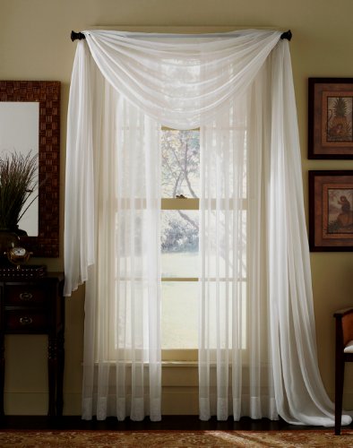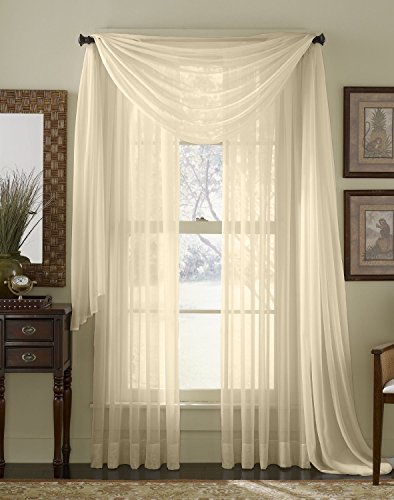This Picture shows two Sheer Panels and a sheer scarf. This Package contains one Sheer Panel. Curtains have a rod pocket insert that create a clean, tailored look For a full look use 2 panels to cover a standard size window (23" to 36" wide window) Allows natural light to flow through the room Machine washable in cold water (gentle cycle) and line dry. Iron on lowest setting if needed.Feature