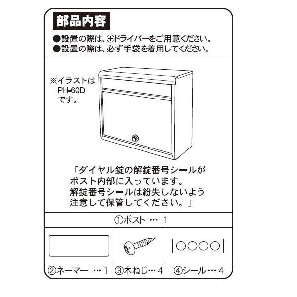 | セット内容 | ポスト×1 ネーマー×1 木ねじ×4 シール×4 |