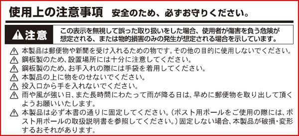 | 仕様 | 壁掛けタイプ ダイヤル錠:DJ-37 投入口サイズ:約W34.5×5.5(5)cm 取り出し口サイズ:約W33×D11×H20cm 完成品 |