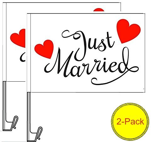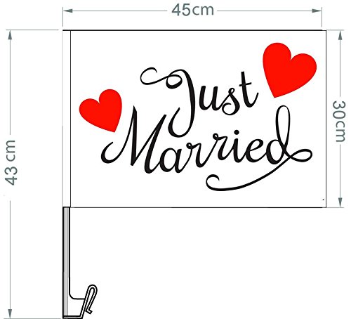 Atziloose Just Married Car Window Flag (Pack of 2), Just Married Car Decorations