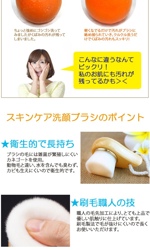 | <h1>ブラシの極微毛細が肌の毛穴の凹凸に入り込み、毛穴の汚れを取り除きます。毛は、動物毛よりも細菌が繁殖しにくい清潔なカネゴー ト(モダアクリル繊維)を使用。刷毛製法で作られているため、毛が落ちることはほとんどなく、長くお使いいただけます。洗顔用ブラシ/クレンジングブラシ /スキンケア/フェイスブラス/毛穴ケア/汚れ</h1> |