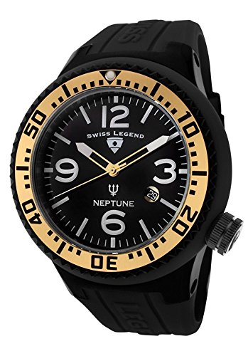 -. Binding : Watch -. Brand : Swiss Legend -. Color : Black -. Department : mens -. EAN : 0722631124589 -. Feature : Swiss quartz movement / Mineral crystal with sapphire coating; black ion-plated stainless steel case with black silicone cover and strap / Date function at 4:00 / Black dial with gold tone and white hands, white hour markers and arabic numerals; luminous; unidirectional black ion-plated stainless steel bezel with gold ring and black arabic numerals; screw-down crown / Water resistant to 330 feet (100 M): suitable for snorkeling, as well as swimming, but not diving -. Label : Swiss Legend -. Manufacturer : Swiss Legend -. Model : 21818P-BB-01-GA -. MPN : 21818P-BB-01-GA -. PackageQuantity : 1 -. PartNumber : 21818P-BB-01-GA -. ProductGroup : Watch -. ProductTypeName : WATCH -. Publisher : Swiss Legend -. ReleaseDate : 2012-09-11 -. Size : Standard -. Studio : Swiss Legend -. Title : Swiss Legend Men's 21818P-BB-01-GA Neptune Black Dial Black Silicone Watch -. UPC : 722631124589