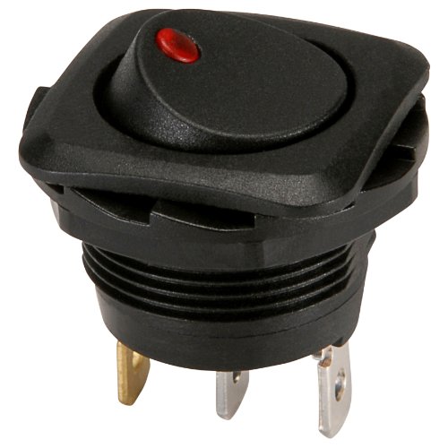 NTE Electronics 54-645 Round Hole Illuminated Rocker Switch, Square Bezel, SPST Circuit, ON-NONE-OFF Action, Nylon Red LED Actuator, 0.187" Quick Connect Terminals, 20A, 12V