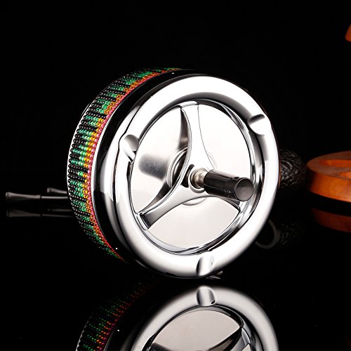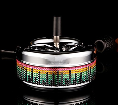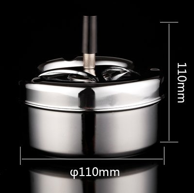 -. Feature : Material: metal / Size: 110*110mm / Weight: 190g / Style: press down spinning ashtray / Ideal for home, office, bars use, also a good decoration for your house.