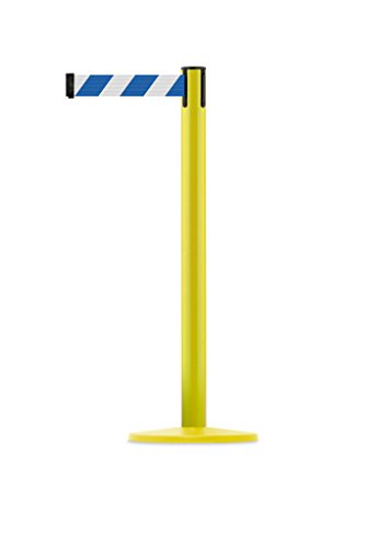 Tensabarrier 889U-35-35-MAX-NO-D1X-C - Yellow Post, 2" Wide, 13' Length Chevron Blue & White Belt , 38" Height, 2.5" Wide, 156" Length