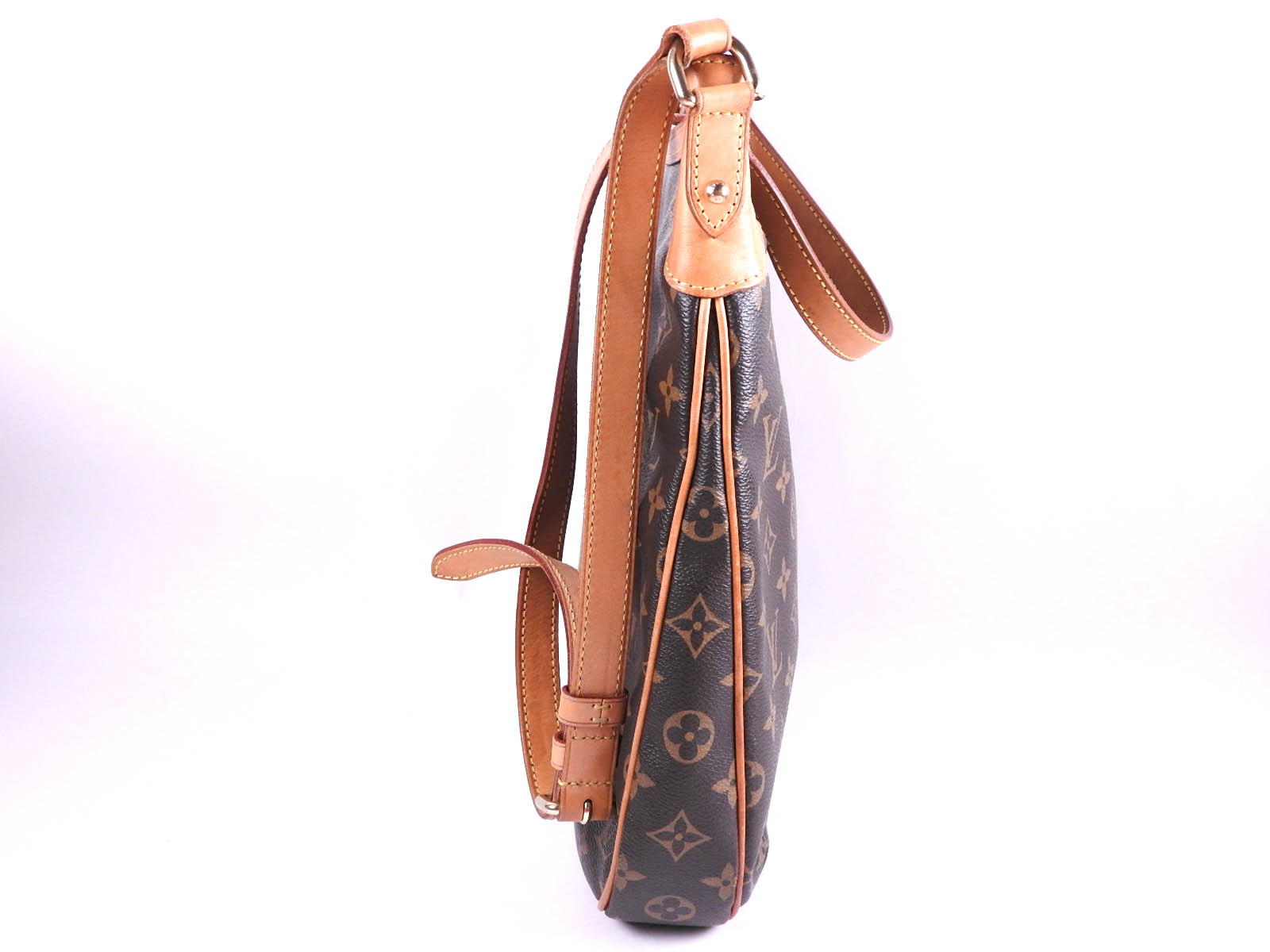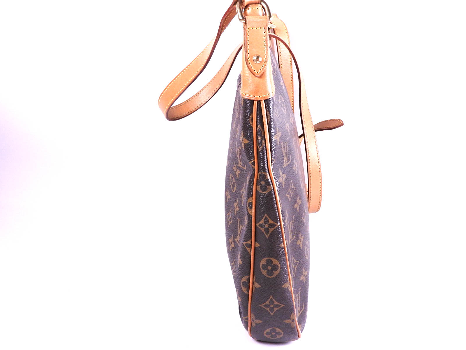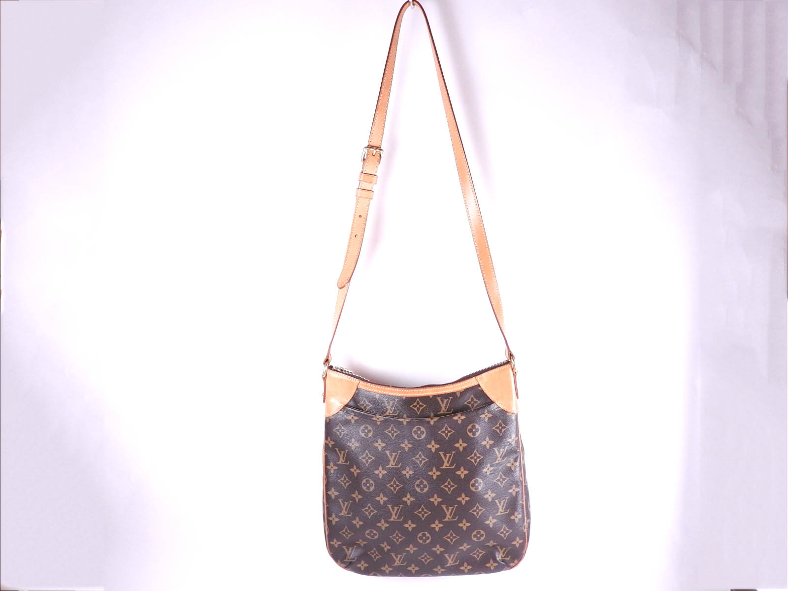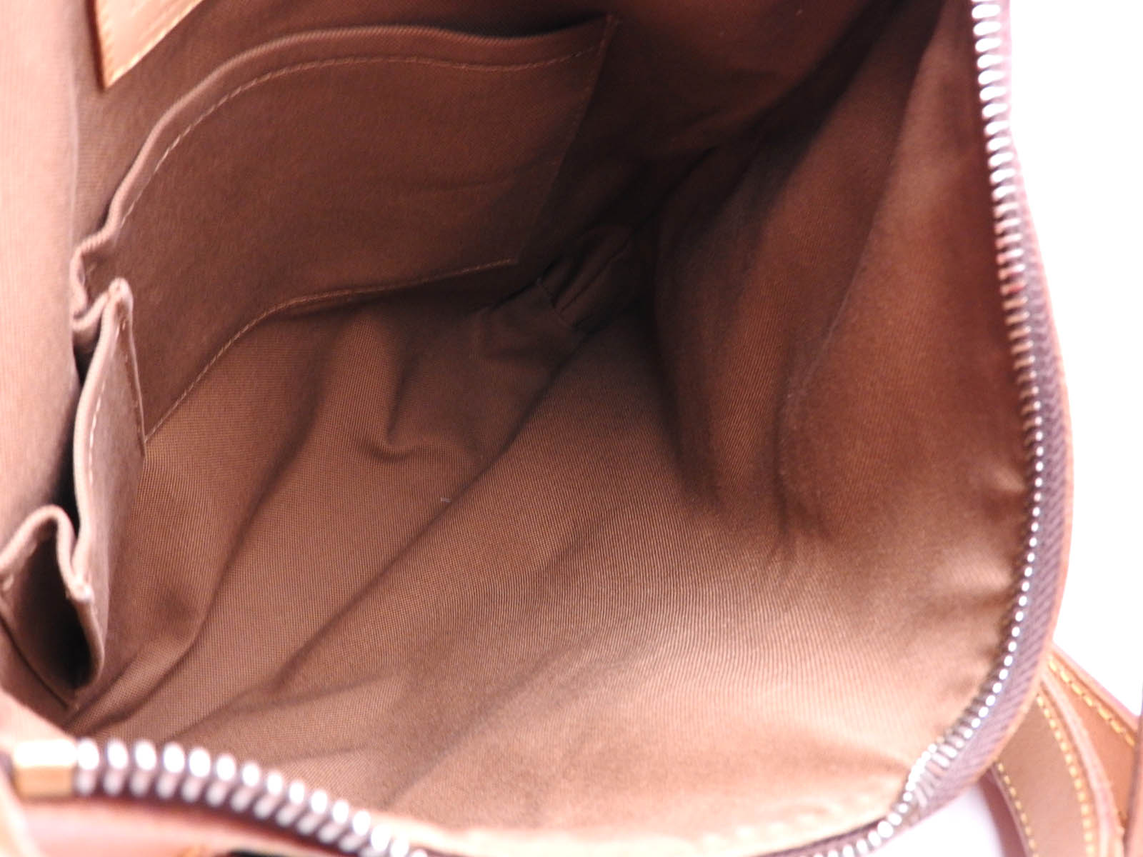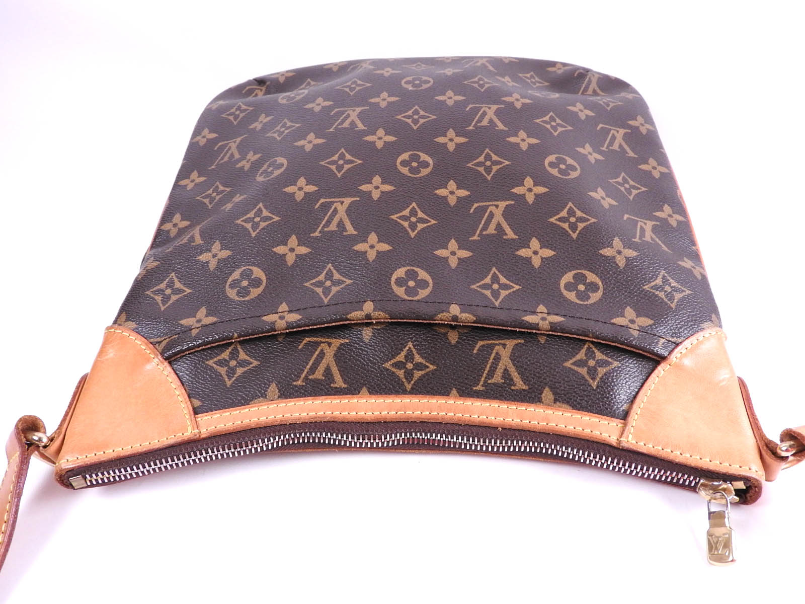 Monogram: Slightly used feeling. Slight stains and wrinkles. Leather: Used feeling. Some stains, wrinkles and tanning. |