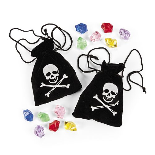 Fun Express Suede Pirate Drawstring Bags with Jewels (1 Dozen)