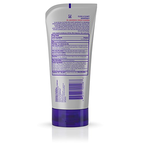 Clean & Clear Oil Absorbing Cleanser combines acne-fighting salicylic acid with Powderparticles technology to absorb oil from skin, even after washing. The cleanser is formulated for normal, oily, and combination skin. Its dual-action formula instantly washes away 85 percent of built-up oil that can lead to excess shine while penetrating pores to help clear and prevent blemishes. The oil-free formula won't clog pores.Feature