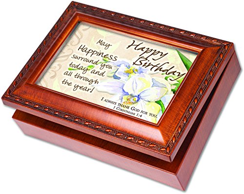 Title : Happy Birthday Cottage Garden Wood Grain Finish Jewelry Music Box - Plays Song Happy Birthday