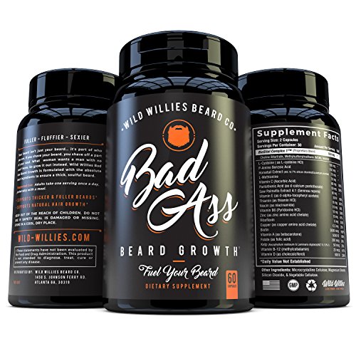 Badass Beard Hair Growth Vitamins: Wild Willies Maximum Facial Hair Growing Supplement - Natural & Healthy Mens Formula Capsules with Biotin...