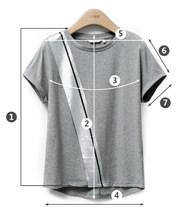 | 尺码 | ①前衣长 | ②后中长 | ③胸围 | ④下摆围 | ⑤肩宽 | ⑥袖长 | ⑦袖口围 | ||