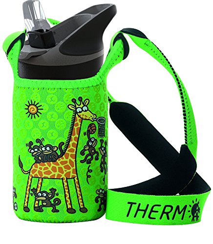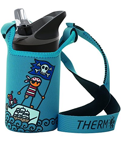 Laken Thermo Jannu Insulated Stainless Steel Kids Water Bottle Wide Mouth with Straw Cap and Handle - 12 Ounce Kukuxumusu Dokus with Neoprene Cover