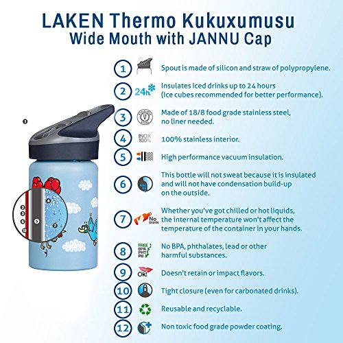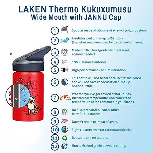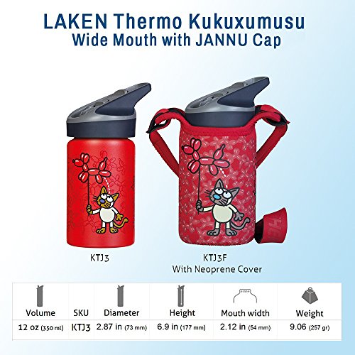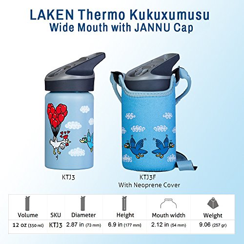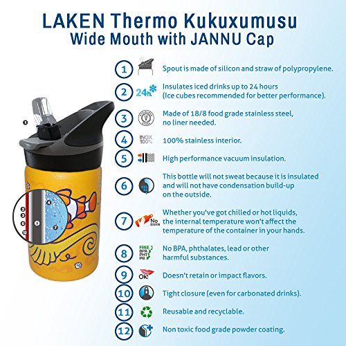 Laken Thermo Jannu Insulated Stainless Steel Kids Water Bottle Wide Mouth wit..., 12 Ounce