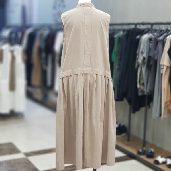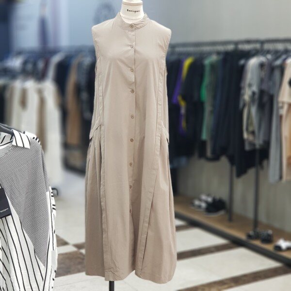 셔링이 적당히 잡혀 여유있는 핏의 면소재의 민소매 원피스~~우레탄성분으로 신축성도 있습니다.깔끔한 차이나카라에 적당한셔링이 귀여움과 여성스러움을 강조해 줍니다.총길이 117cm가슴단면 51cm컬러 베이지,블랙사이즈 FREE