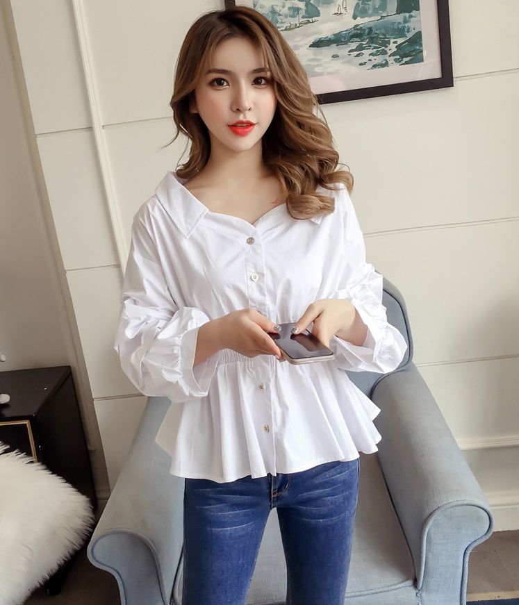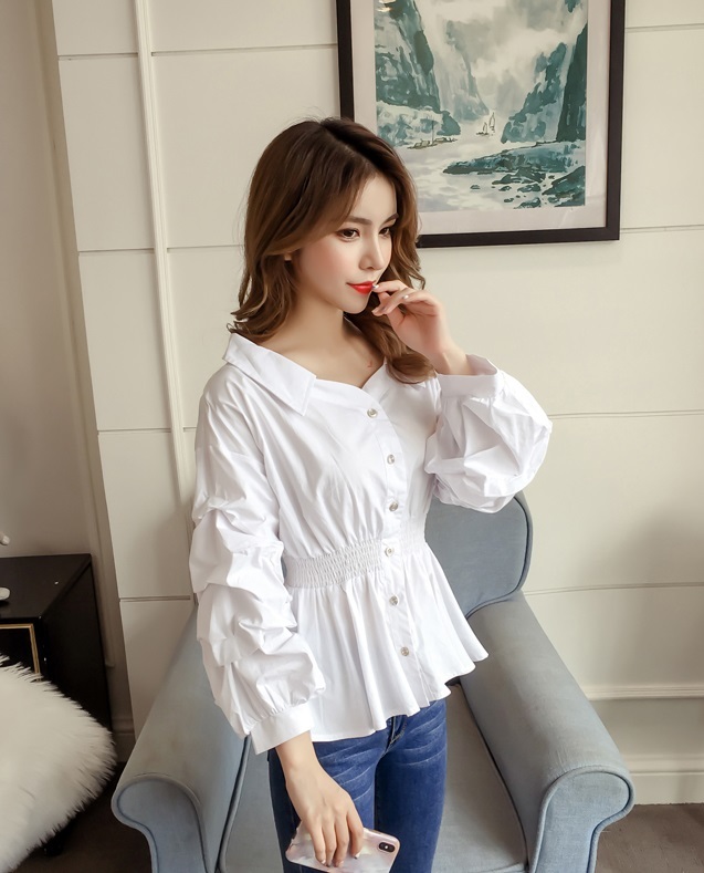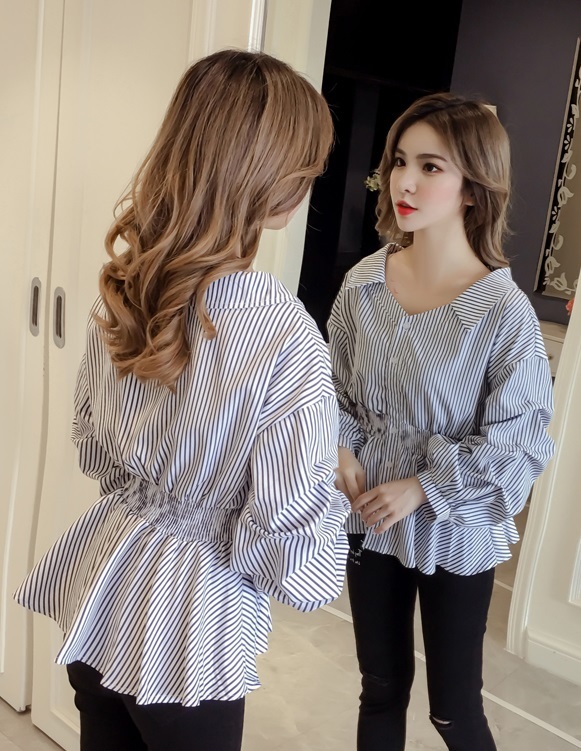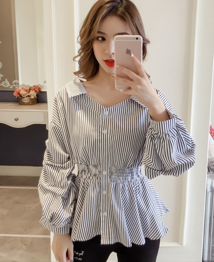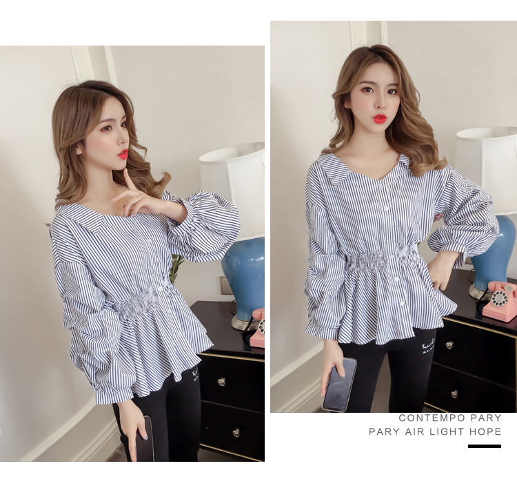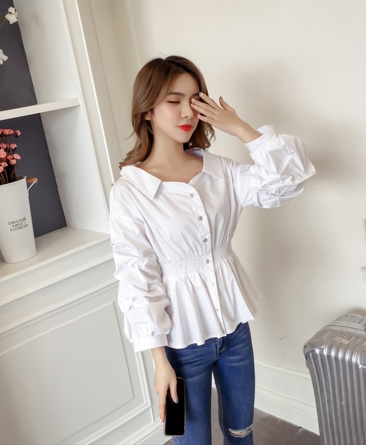 ウエスト部分にシャーリングが入り、ぺプラムシルエットを描き出す大人可愛いブラウスです♪