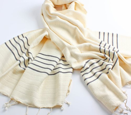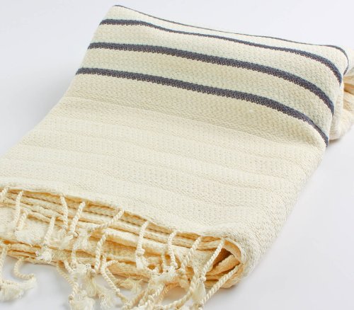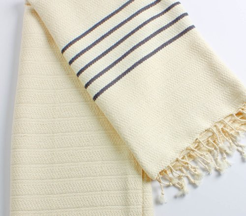 Hand Loomed Pestemal Striped Turkish Bath Towel 34x66 %100 CottonTM by Cacala Black