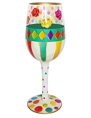 Studio : 95 and Sunny Publisher : 95 and Sunny Product Description 95 and Sunny - Wine Glass "Roses" Bottom's Up This collectible wine glass has touches of hand painting over a silk screening. Some glasses may have dimensional painting and or crystal accent stones. It has a pulled stel and holds 15 ounces. Each glass is packaged in a gift box. The decorative wine glass is a practical present that is useful and displayable. Care instructions: Hand wash ONLY, Do not use in mocrowave. Do NOT soak. 0