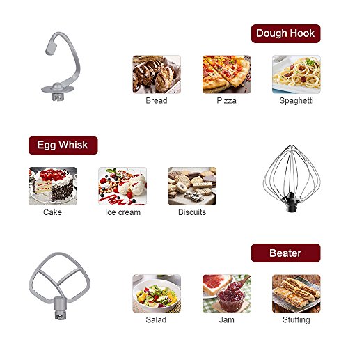 Includes Four Unique Attachments: 1 x Flat Beater For general purpose mixing, beating, folding and combing, this paddle shaped heavy duty die cast beater will gently,
