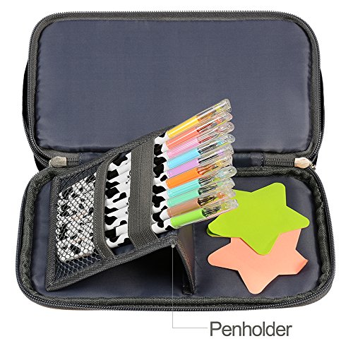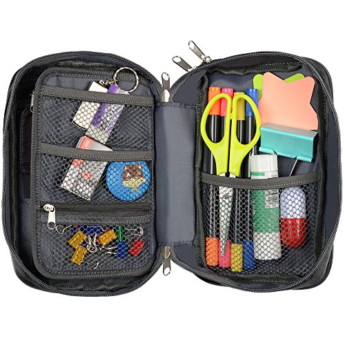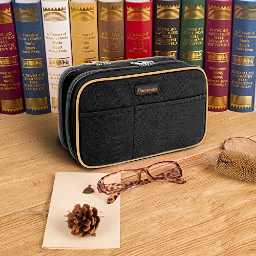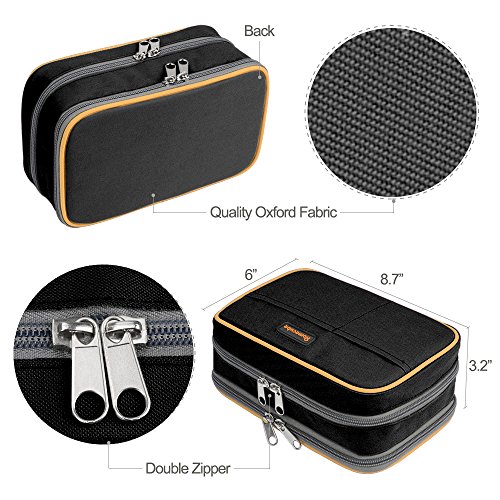 Pencil Case, Homecube Large Capacity Pen Bag Makeup Pouch Durable Students Stationery Two Big Pockets With Double Zipper 8.7x6x3.2" (Black)