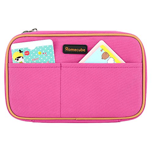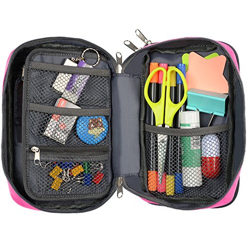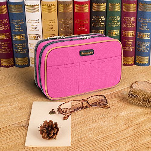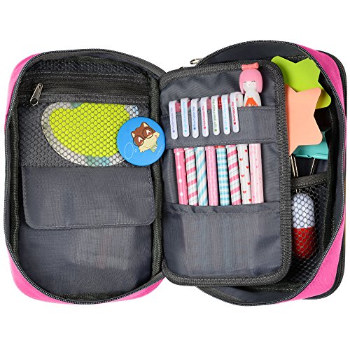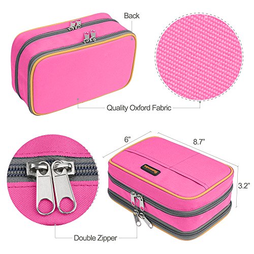 Pencil Case, Homecube Large Capacity Pen Bag Makeup Pouch Durable Students Stationery Two Big Pockets With Double Zipper 8.7x6x3.2" (Rose Red)