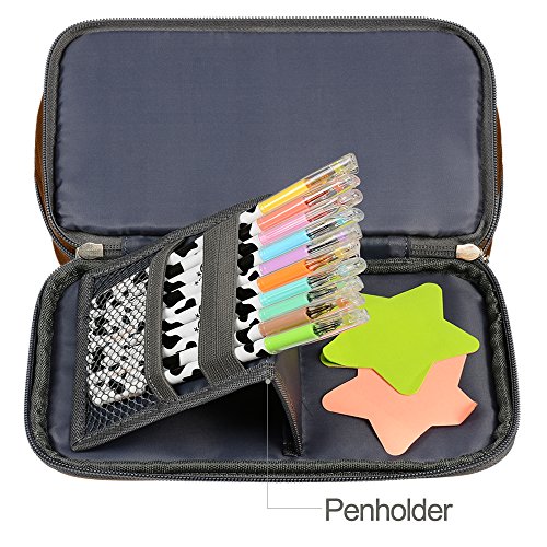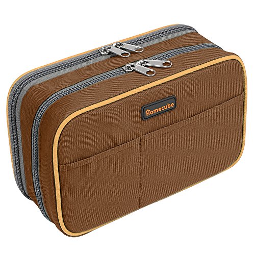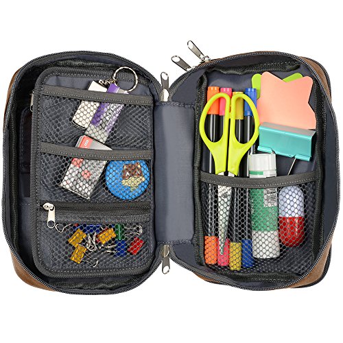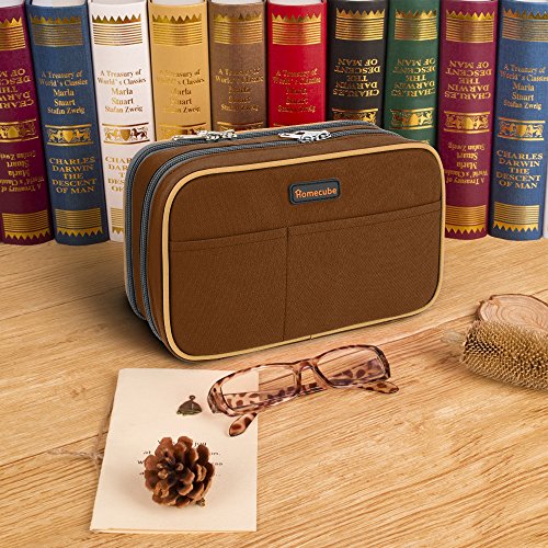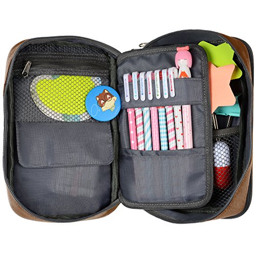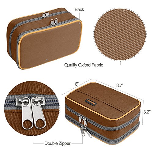 Pencil Case, Homecube Large Capacity Pen Bag Makeup Pouch Durable Students Stationery Two Big Pockets With Double Zipper 8.7x6x3.2" (Coffee)
