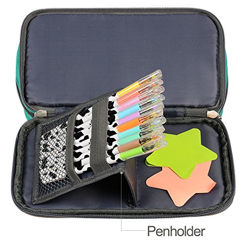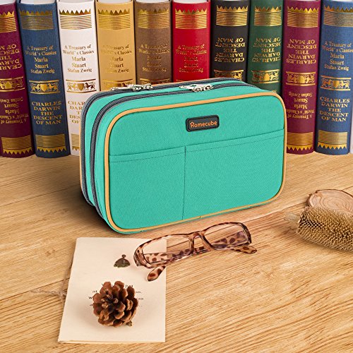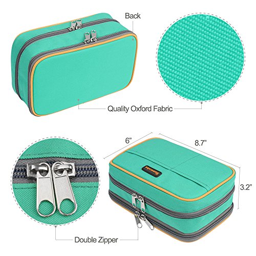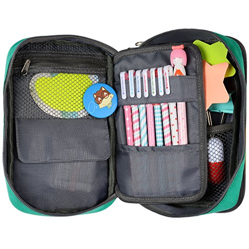 Pencil Case, Homecube Large Capacity Pen Bag Makeup Pouch Durable Students Stationery Two Big Pockets With Double Zipper 8.7x6x3.2" (Green)