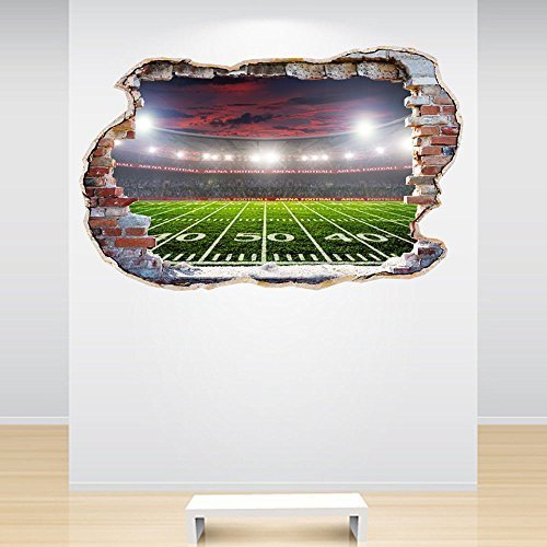 -. Title : 60 Second Makeover Limited Full Colour American Football Stadium Smashed Wall 3D Effect Boys Bedroom Wall Sticker Decal Kids Bedroom Decoration