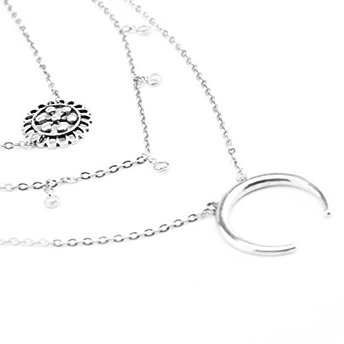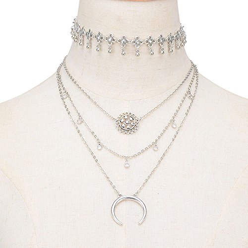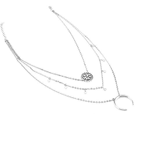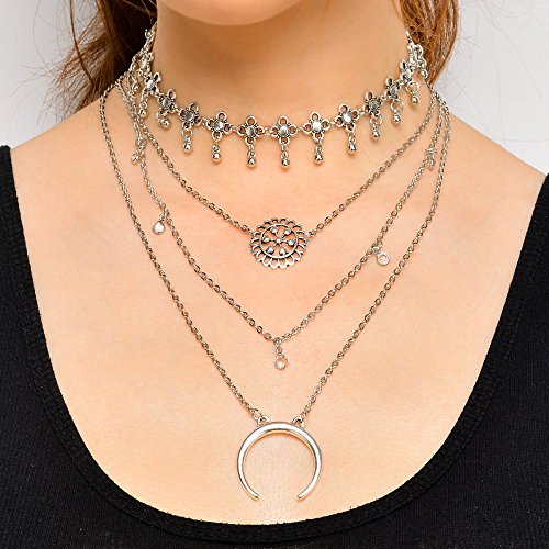 -. Title : FXmimior Punk Necklace Set 2 PCS Multitier Chain Layered Flower Silver Circle Chic Pendant Chain Long Layered Necklace and Choke