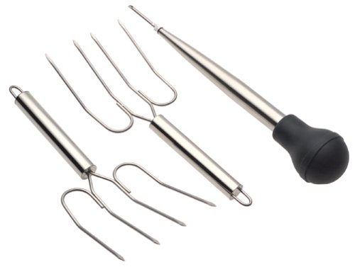 Deep roaster with roasting rack, silicone baster, and turkey lifters