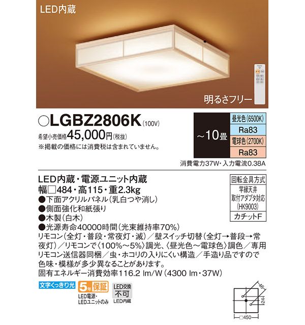 ●LED(昼光色6500K・Ra83/電球色2700K・Ra83)