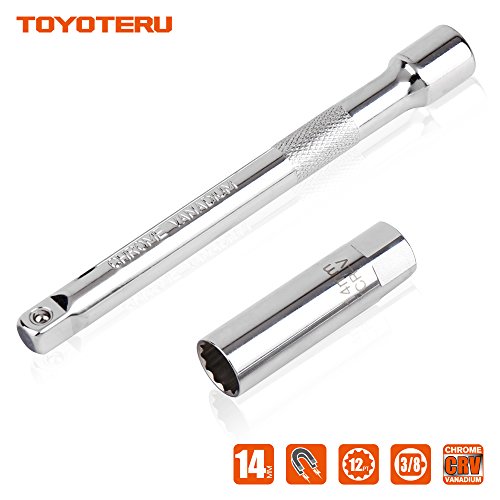 TOYOTERU Magnetic Spark Plug Socket Thin Wall 3/8" Drive 12- point 14mm For BMW Nissan Mimi Series+ 6 Inch Extension Bar to Permits Access to Most Confined