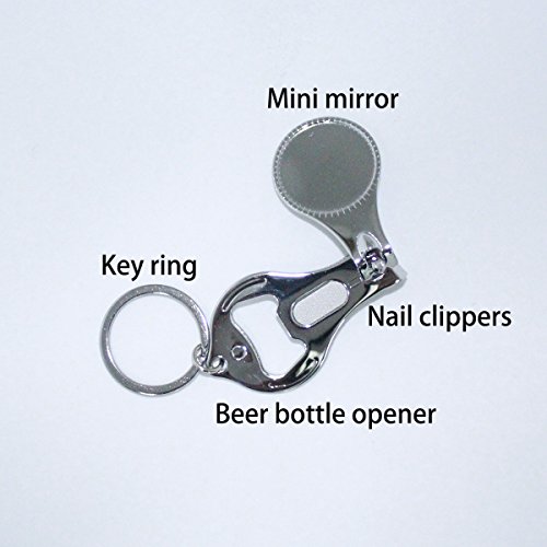 Multifunction Key Ring & Mini vanity mirror & Nail Clippers & Beer Bottle Opener, Makeup Mirror for White Collar Young Women Key Ring for Women Office Tools Practical Silver Nail clippers
