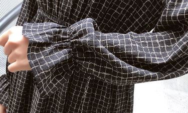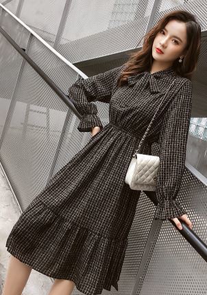 裾フリル&袖シャーリングがフェミニンなボウタイワンピースです。
