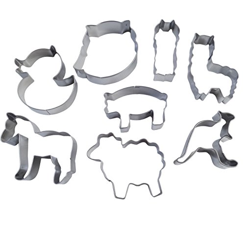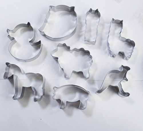 Yunko 8pcs Farm Animals Cartoon Stainless Steel Cookie Cutter Fondant Cutter Cake Decorating Tools Sheep Horse Owl Pig Duck Kangaroo Alpaca
