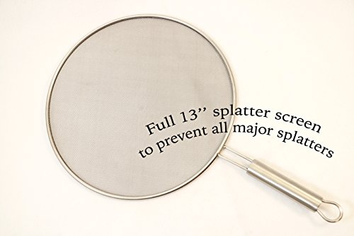 ExcelSteel Splatter Screen with Solid Handle, 13", Stainless Steel