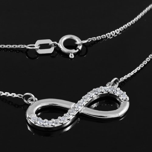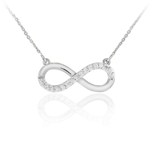 -. Binding : Jewelry -. Brand : Infinity Necklaces -. Department : womens -. Feature : 14 karat white gold fine contemporary necklace with an horizontal infinity pendant half-studded with gemstones (2.20 grams in average total weight) / embellished with 16 authentic round-cut I1-I2 natural white diamonds in precious prongs setting / comes with white gold rolo chain and free special gift packaging / made in the USA yet offered at factory-direct jewelry P.R.Ice / ships within 24 hours from the manufacturer directly to the customers themselves -. Label : Claddagh Gold -. Manufacturer : Claddagh Gold -. Model : CM658WH -. ProductGroup : Jewelry -. ProductTypeName : FASHIONNECKLACEBRACELETANKLET -. Publisher : Claddagh Gold -. Studio : Claddagh Gold -. Title : Fine 14k White Gold Infinity Polished Pendant Necklace with Diamonds