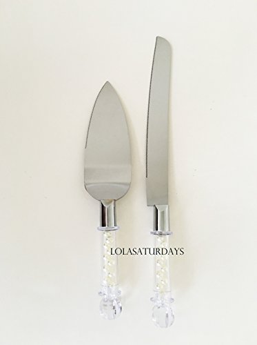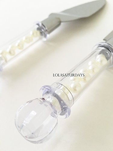 Lolasaturdays Cake knife and server filled with pearl beads (Ivory Pearls)