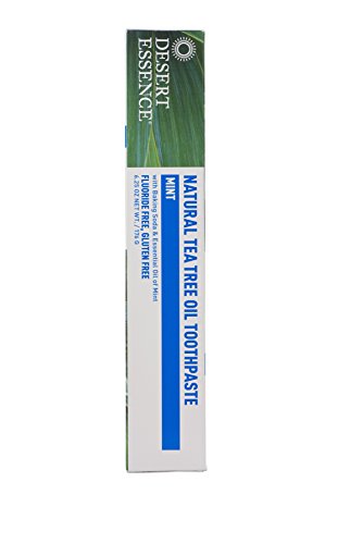 -. Binding : Health and Beauty -. Brand : Desert Essence -. Feature : Fluoride and gluten free / Helps fight plaque naturally / Deep cleans teeth and gums without harsh abrasives -. IsAdultProduct : 0 -. Label : Desert Essence -. LegalDisclaimer : These statements have not been evaluated by the Food & Drug Administration. This products is not intended to diagnose, cure, mitigate, treat, or prevent any disease. -. Manufacturer : Desert Essence -. MPN : DE0089 -. PackageQuantity : 1 -. PartNumber : DE0089 -. ProductGroup : Health and Beauty -. ProductTypeName : HEALTH_PERSONAL_CARE -. Publisher : Desert Essence -. Size : 3 Oz -. Studio : Desert Essence -. Title : Natural Tea Tree Oil Toothpaste 3 Oz Fennel ( with Baking Soda & Essential Oil of Fennel ) by Desert Essence