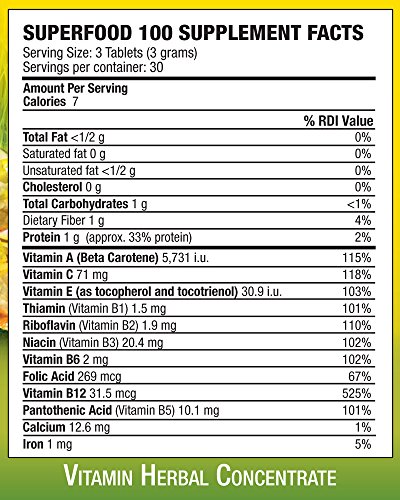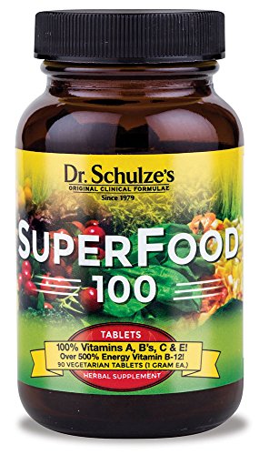 -. Binding : Health and Beauty -. Brand : Dr. Schulze's -. Color : green -. Department : health and personal care -. EAN : 0632687640509 -. Feature : The nutrition you need and the energy you want in only 3 tablets per day! / 100% of your RDI of Vitamins A, B, C and E / Over 500% of your ENERGY Vitamin B-12 / 100% Natural, 100% Vegan, 100% Herbal and Food Nutrition that ASSIMILATES IN SECONDS -. IsAdultProduct : 0 -. Label : Dr. Schulze's -. LegalDisclaimer : These products are not intended to diagnose, treat, cure or prevent any disease. -. Manufacturer : Dr. Schulze's -. Model : 0 -. MPN : ISF100 -. NumberOfItems : 1 -. PackageQuantity : 1 -. PartNumber : ISF100 -. ProductGroup : Health and Beauty -. ProductTypeName : HEALTH_PERSONAL_CARE -. PublicationDate : 2014-09-01 -. Publisher : Dr. Schulze's -. ReleaseDate : 2014-08-29 -. Studio : Dr. Schulze's -. Title : Dr. Schulze's SuperFood-100 (90-ct tablets) -. UPC : 632687640509