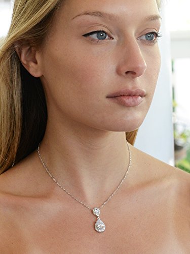 -. Feature : Mariell's Best-Selling Pear-Shaped Cubic Zirconia Halo Necklace is Understated with Sophisticated Bling; Adjustable Necklace Chain Measures 16" - 18"; Glamorous Teardrop pendant is 1 1/4" h / Genuine Silver Platinum Plating with the Look of Fine Jewelry At a Fraction of the P.R.Ice; Ideal for Weddings, Bridesmaids, Proms or Dressy Business or Everyday Wear / Finest Quality AAAAA Grade Cubic Zirconia; Precision Cut for Diamond-like Brilliance / RISK-FREE Purchase; 100% Money-Back if Not Delighted; LIFETIME GUARANTEE / Beautifully Packaged in Luxurious Silver-Embossed Mariell Signature Gift Box Ideal for Bridal, Wedding, Prom, Bridesmaids, Mother of the Bride, Homecoming, Holidays, Christmas, New Year's Eve, Special Occasions, Birthday, Valentine's Day, Mother's Day or Anniversary Gifts; Fabulous Addition to Every Woman's Jewelry Collection
