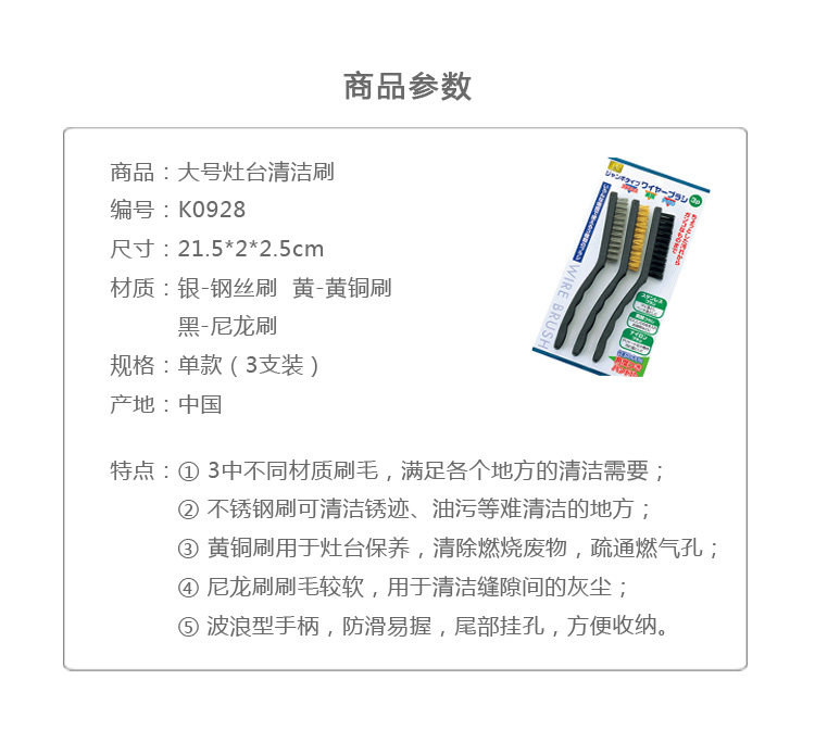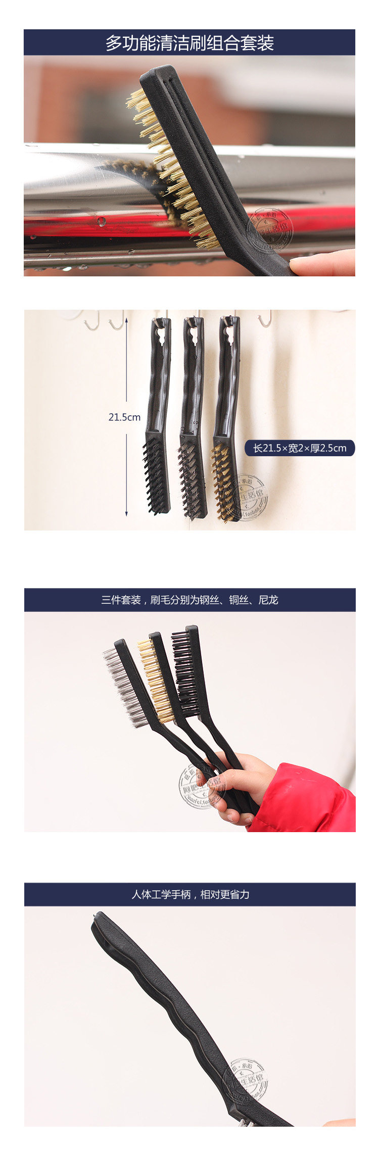 Material: wire brush, brass brush, nylon brush