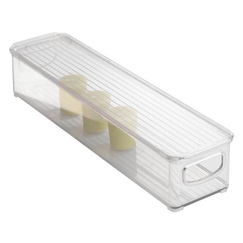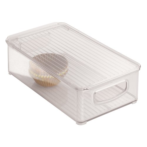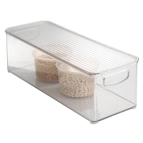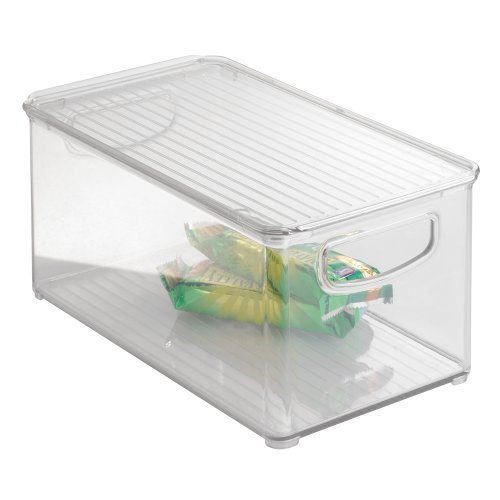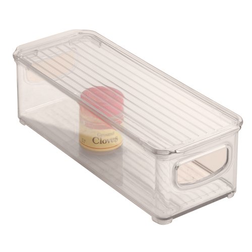 Organize your house with InterDesign's household storage organizers. Made of durable clear plastic with sturdy feet, these organizers will find use anywhere in the home. Organize produce in the fridge, spices in the pantry, utensils in the drawer, makeup in the bathroom, office supplies at the desk and many other items all over the home, office or elsewhere. These versatile bins include a lid and have built-in carrying handles for easy transportation and storage. Built in feet allows for optional secure stacking to best maximize space. You're sure to find multiple uses for these organizers.