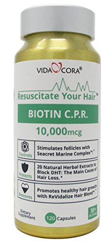 -. Feature : Biotin 10,000mcg (120 Vegi-Capsule) Supports Healthy Hair, Nails and Energy Production / Stimulate Follicles by Hydrating the Scalp with Vital Nutrients with Seacret Marine Complex Blend (Including Korean Red Seaweed, Mollusk Powder and Fish Cartilage) / 20 Natural Herbal Extracts to Block DHT (Including Saw Palmetto, Nettles Extract, Beta Sitosterol, Pygeum Bark Extracts) / Promotes Healthy Hair Growth with our ProP.R.Ietary ReVidalize Hair Blend