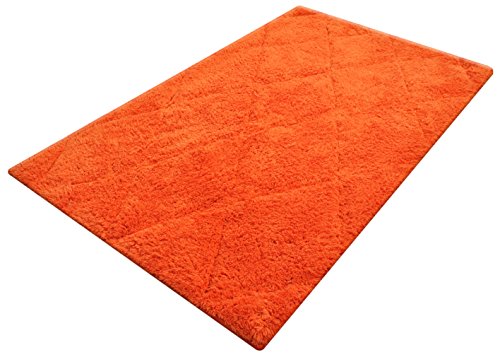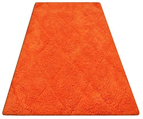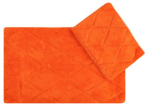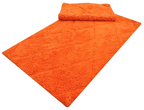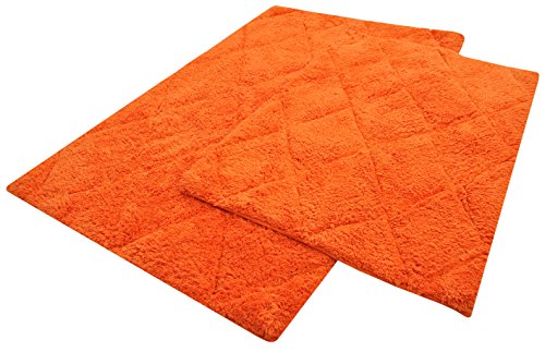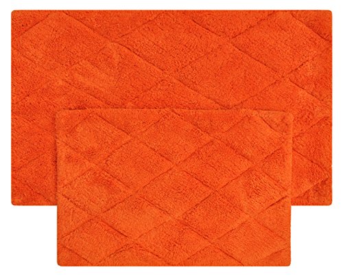 Year End Sale Bath Mat Rug Set Plush Deluxe Diamond Cut Design with Spray Latex Back,100% Cotton, Anti Lint Treated Machine Easy Care Washable Sturdy Construction, Orange 21x34/17x24 In Set of 2