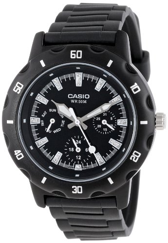 -. Binding : Watch -. Brand : Casio -. Color : black -. Department : womens -. EAN : 3657564574743 -. Feature : Black aluminum case and matching engraved bezel / Black dial with day and date display; Glitter index markers / Silver-tone luminous hour hands; Luminous tip sweep second hand / Black resin strap with buckle closure / Water resistant to 165 feet (50 M): suitable for swimming and showering -. Label : Casio -. Manufacturer : Casio -. Model : LTP1328-1EV -. MPN : LTP1328-1EV -. PackageQuantity : 1 -. PartNumber : LTP1328-1EV -. ProductGroup : Watch -. ProductTypeName : WATCH -. Publisher : Casio -. ReleaseDate : 2011-09-01 -. Studio : Casio -. Title : Casio Women's LTP1328-1EV Sport Classic Black Analog Dial and Resin Strap Watch -. UPC : 079767940690