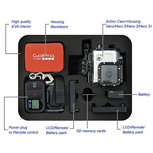 Fits for GoPro Hero 4/3+/3/2/1 and Accessories, Keeps your GoPro and accessories safe, protected, and organized. Premium EVA Foam padding on ALL sides